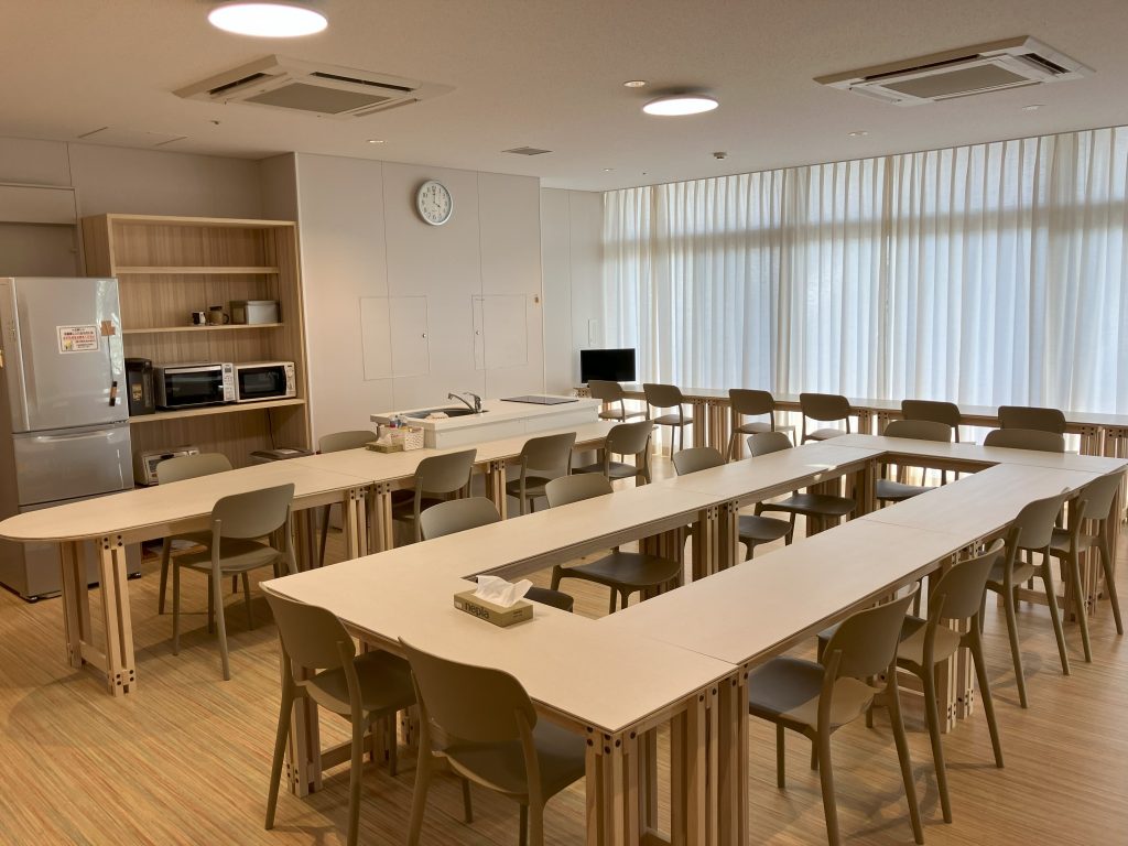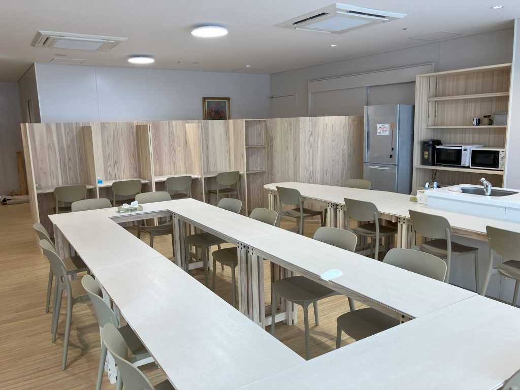 食事や休息場所だけでなく、ミーティングや研修にも活用できる空間となりました。